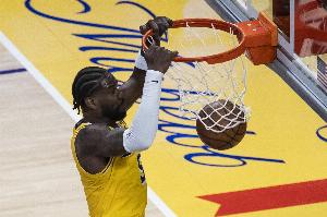 本场比赛,湖人内线艾顿表现不错,进攻高效的同时篮板也上双,对位申京丝毫不落下风,打了35分钟,投篮10中8,罚球3中3,拿到19分11篮板2助攻1盖帽,正负值+7。