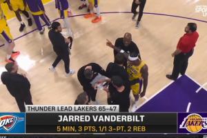 湖人ESPN队记Dave McMenamin报道,湖人主教练雷迪克第二节刚开始就叫暂停,将范德彪换下场,后者情绪激动与教练发生口角。里夫斯和助理教练介入阻隔双方。随后克内克特将范德彪换下。